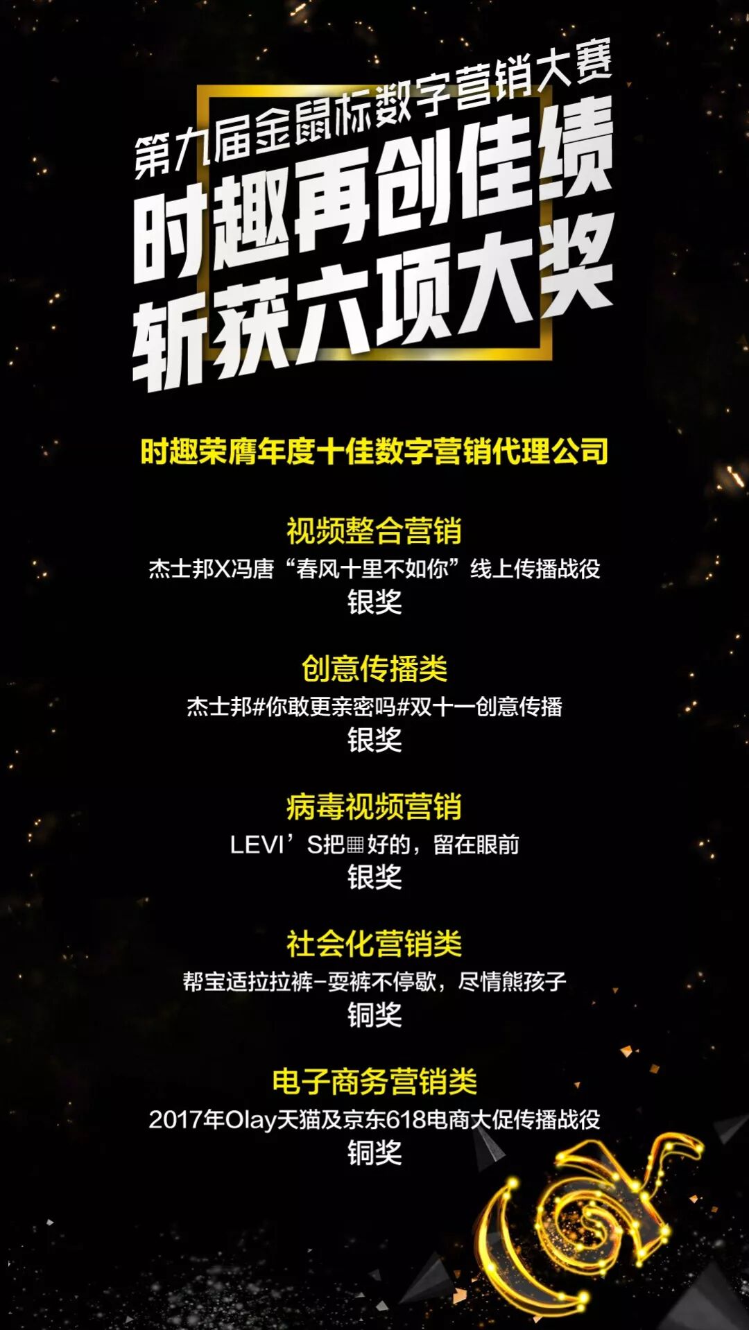 在本届金鼠标数字营销大赛中时趣获得了更多认可与荣誉,作为连续多年获得金鼠标各项大奖的营销解决方案公司,我们定会继续秉持客户至上的企业价值观,洞悉市场变化、适应传播环境,以“多、快、好、准”的营销水平,向客户提供更多高附加值的服务。