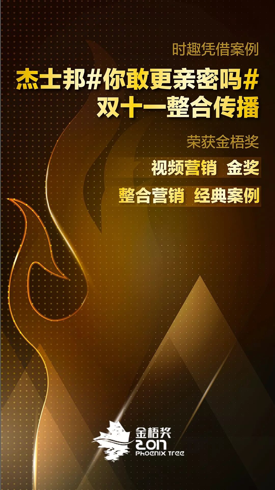 6月29日,2018第四届金梧奖-移动广告创意节在上海隆重开幕,时趣互动作为获奖方参与了这一盛典,时趣选送的“杰士邦#你敢更亲密吗#双十一整合传播”营销案例,凭借先进的技术和全新的创意理念,在众多案例中脱颖而出,成功斩获视频营销金奖、整合营销经典案例。